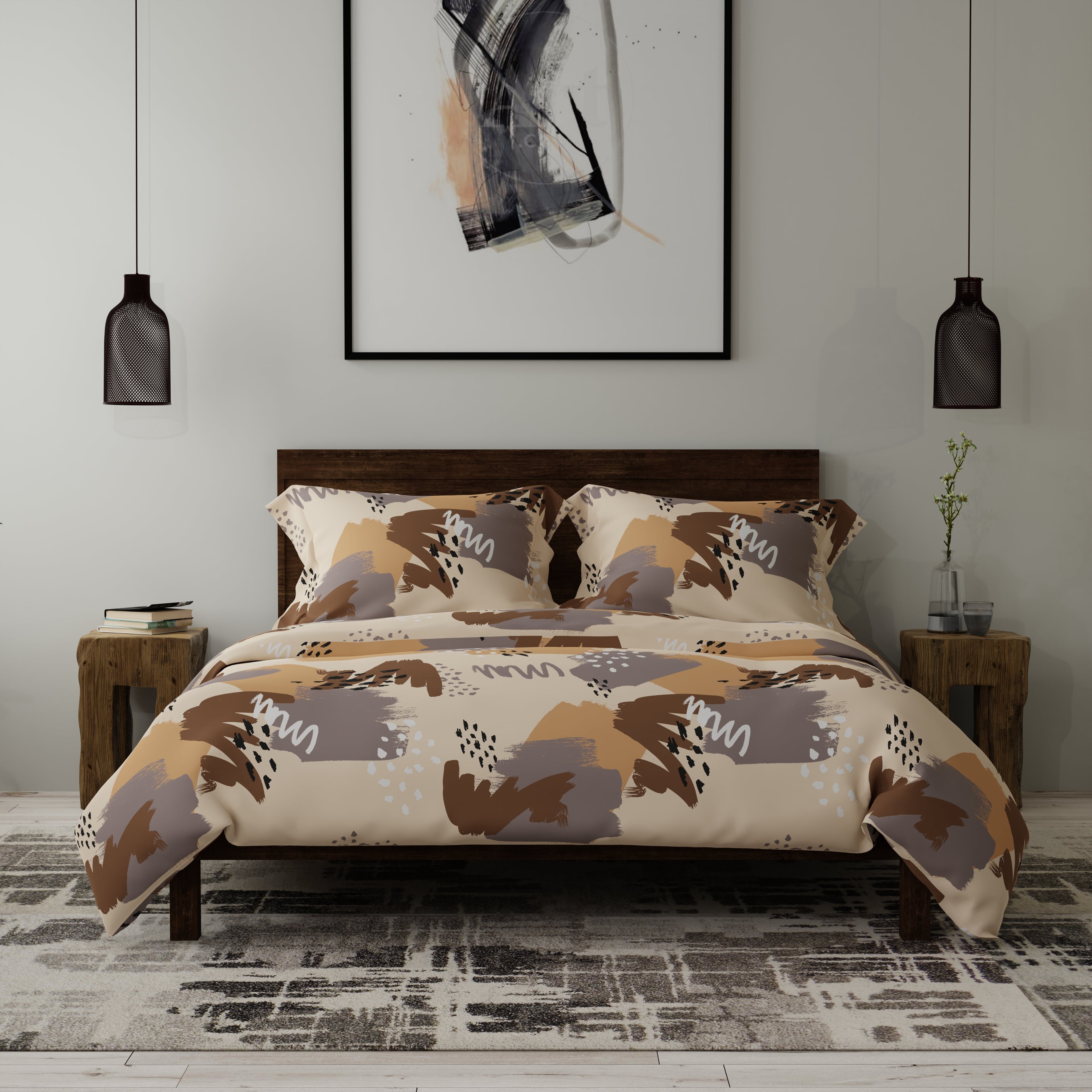 200 TC 100% Pure Cotton Abstract Brushstrokes Brown Bedsheet Set