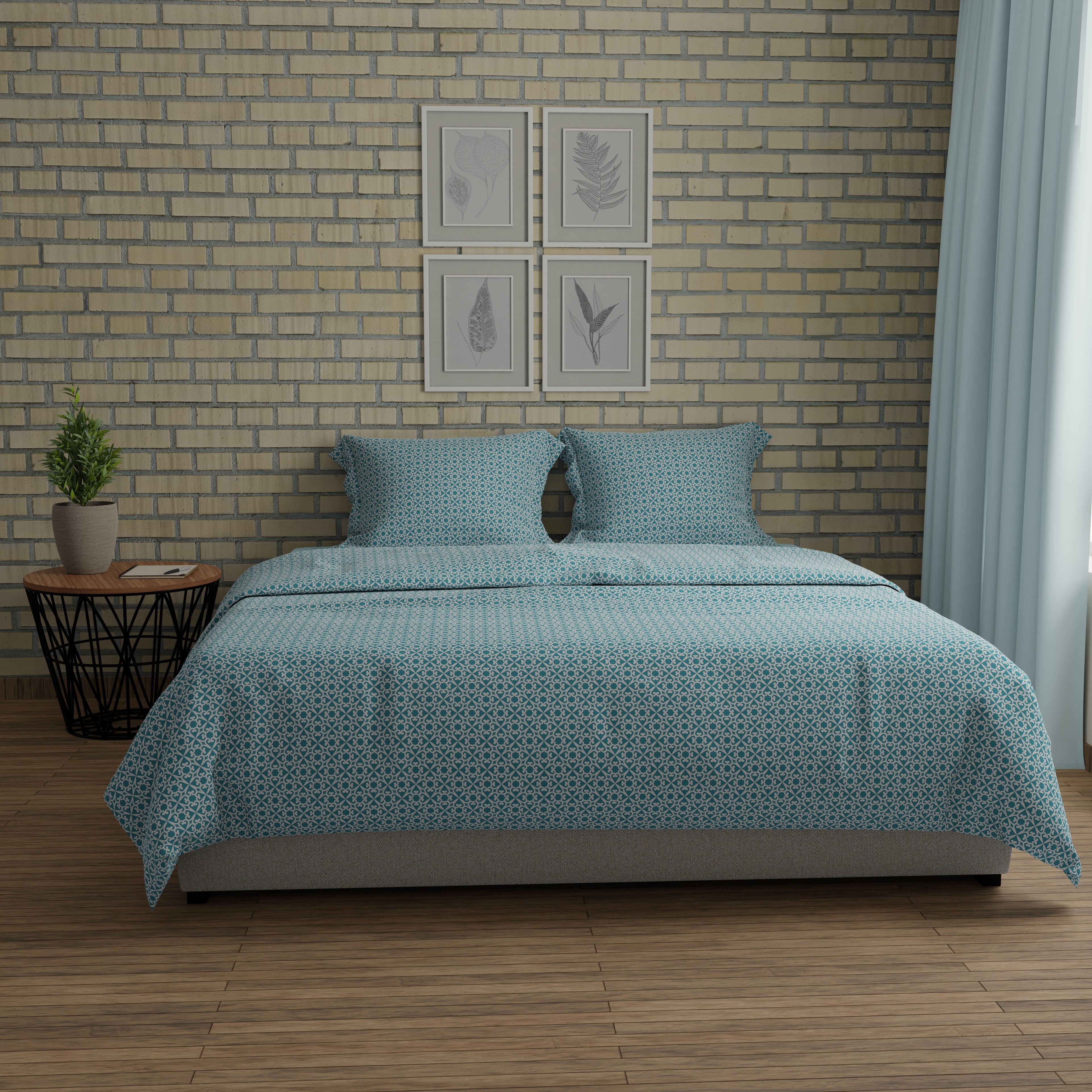 200 TC 100% Pure Cotton Floraline Dynamics Blue Bedsheet Set