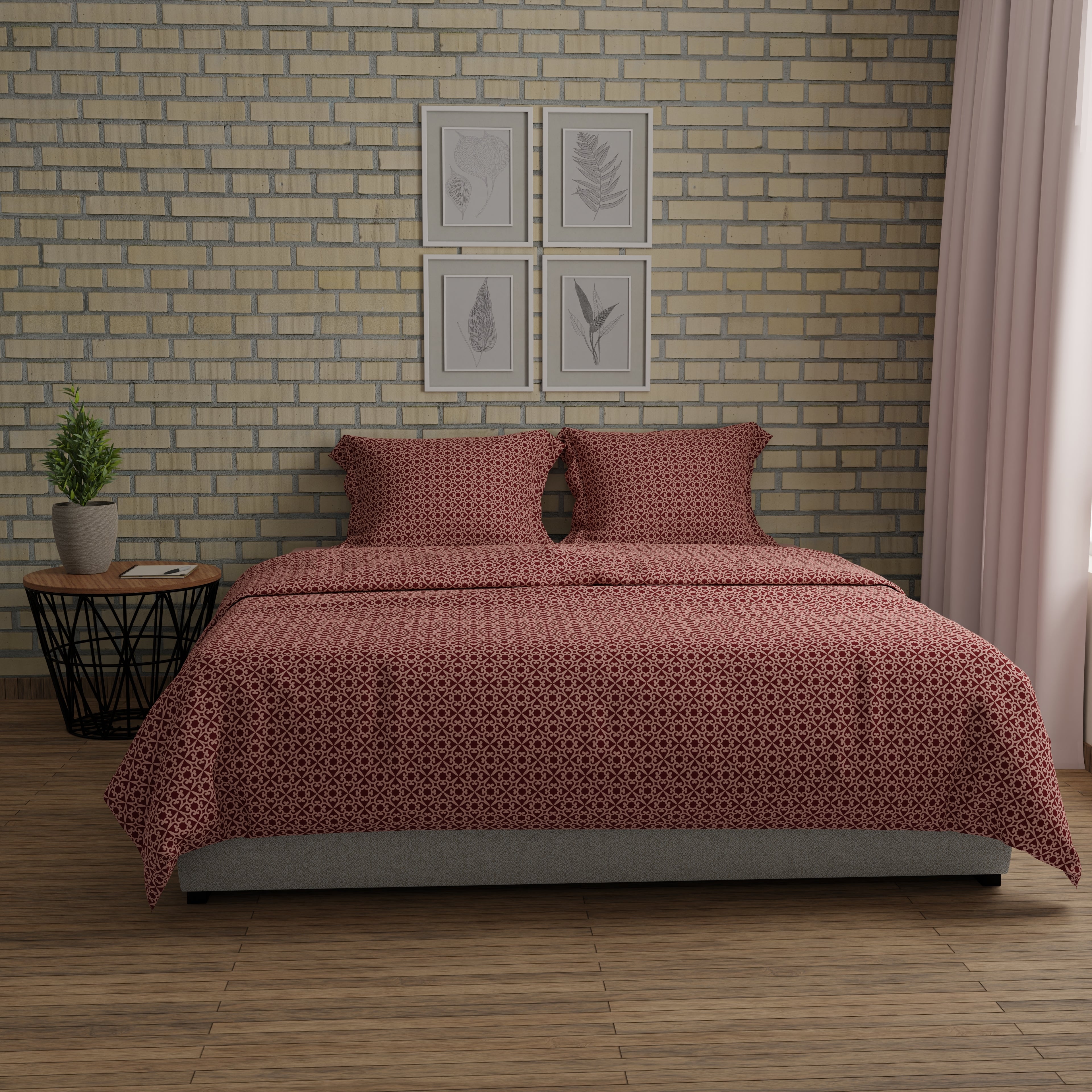 200 TC 100% Pure Cotton Floraline Dynamics Burgundy Bedsheet Set