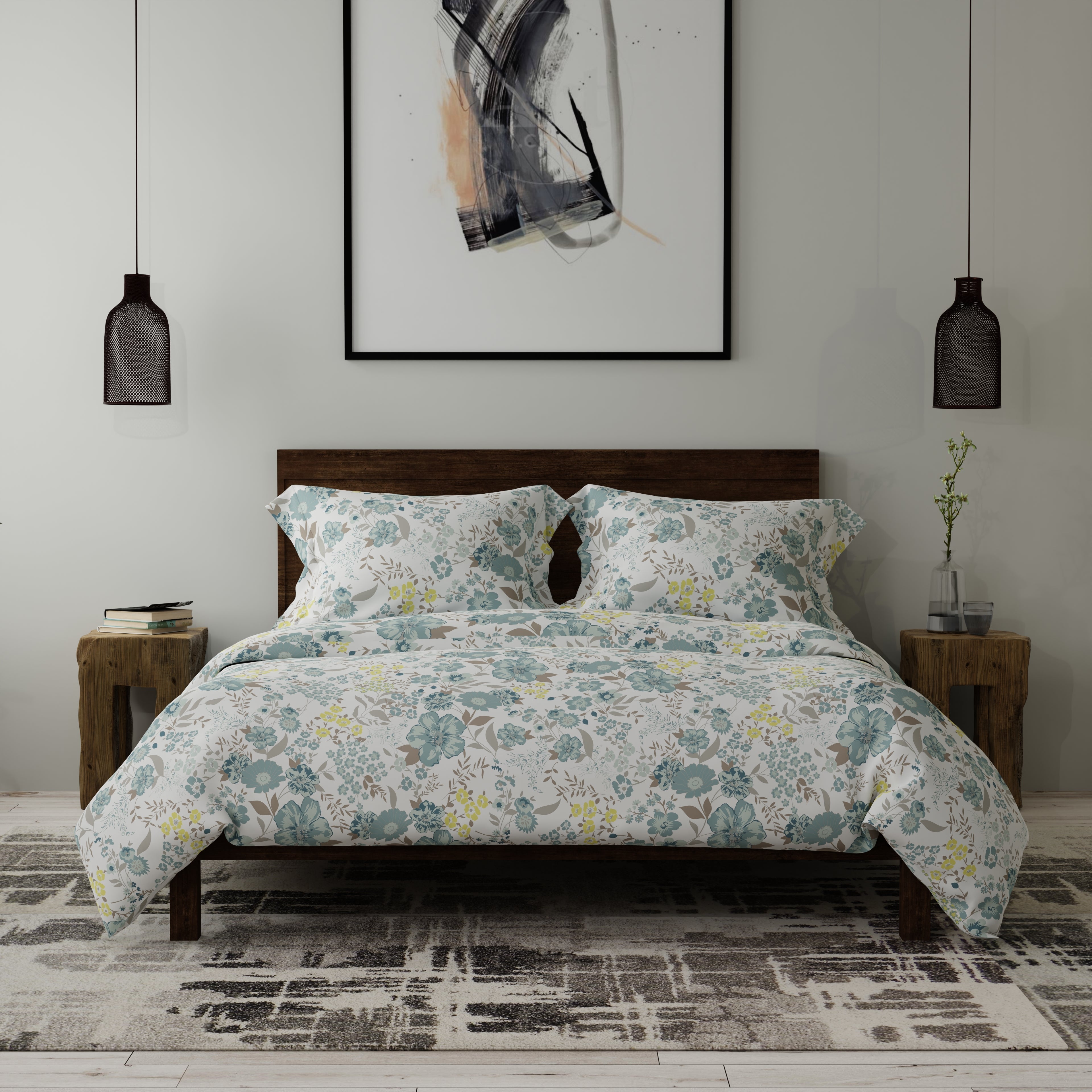 200 TC 100% Pure Cotton Garden Gala Blue Bedsheet Set