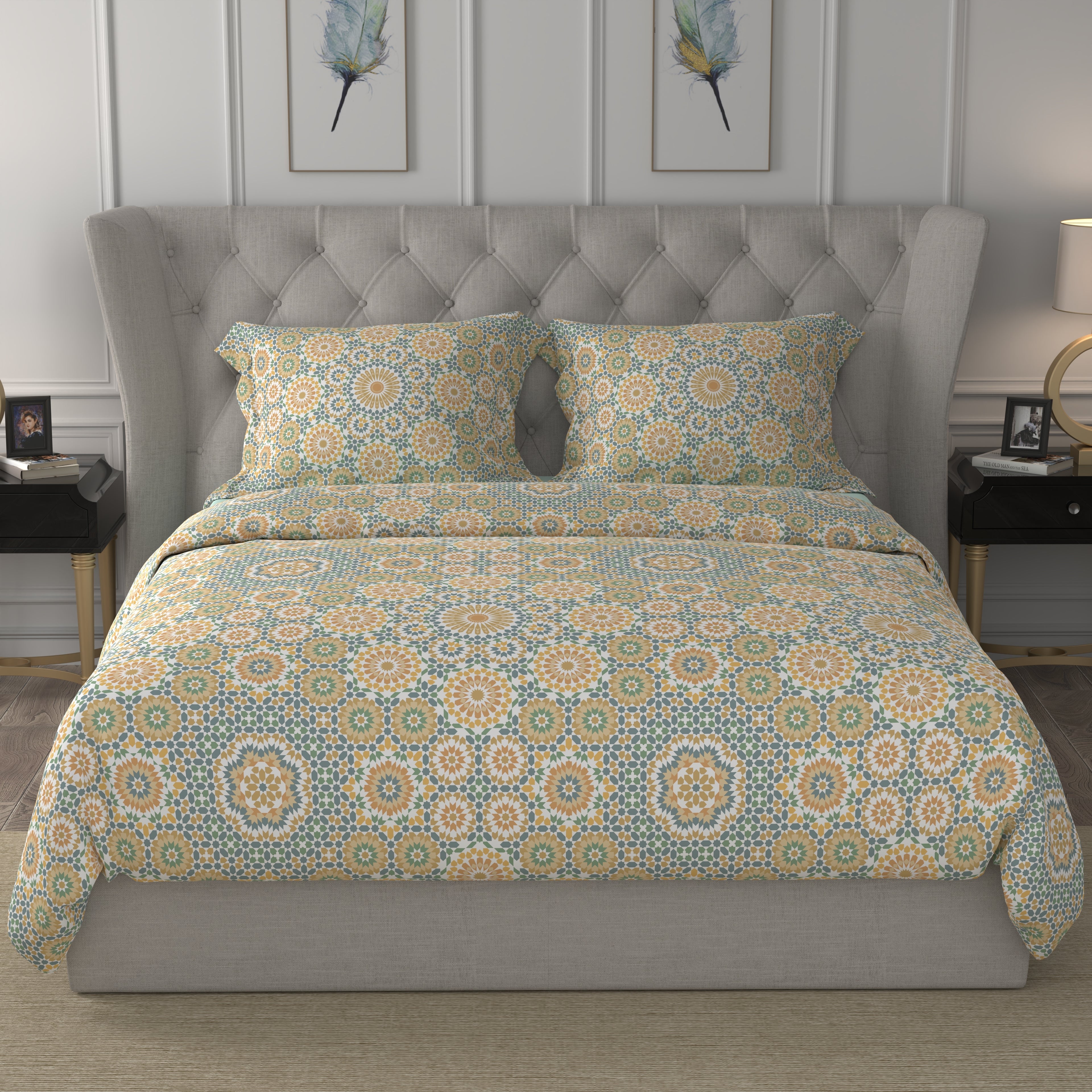 300 TC 100% Pure Cotton Circular Serenade Blue Bedsheet Set