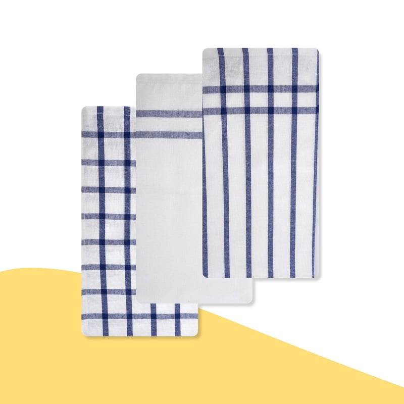 Cotton Blue Rail Kitchen Towel - Set of 6, 100% Cotton