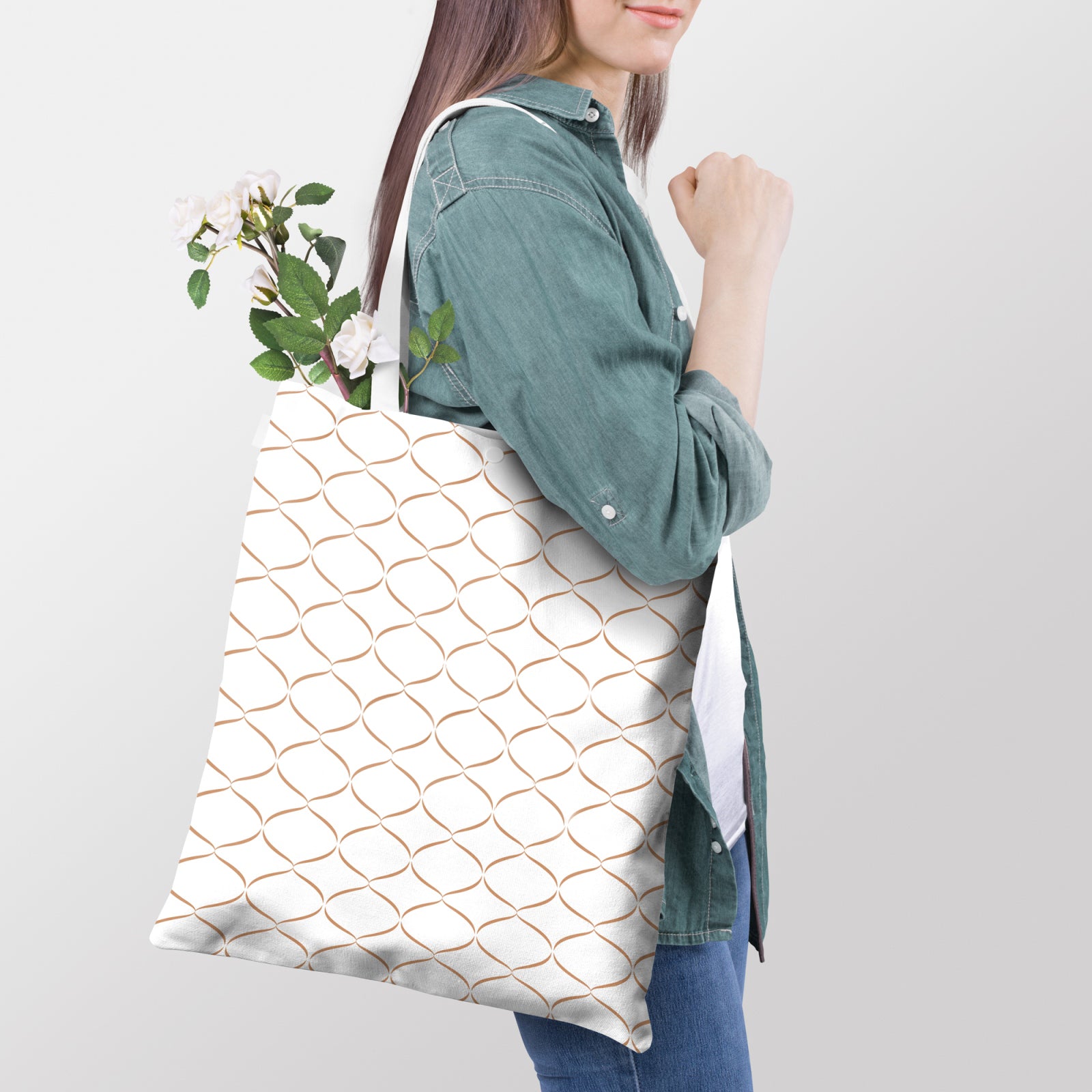 Introducing Swaas Cotton Tote Bag of Splash-Proof technology. Elegant print pattern and clean shape highlight the minimalist style of this spacious white tote crafted from 100% pure and durable cotton and topped with easy over-the-shoulder handles. The Slouchy cotton fabric delivers softness and spacious capacity. In addition to being super chic, this bag is part of Swaas water-saving program and is eco-consciously made using significantly less water.