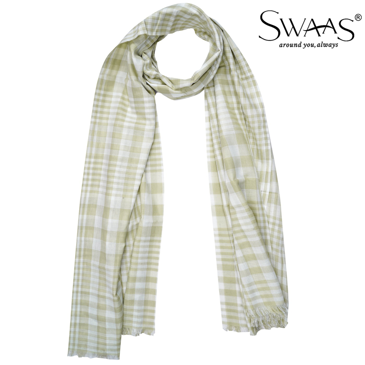 Women’s Stylish Scarf - Light Green Checks, 100% Cotton