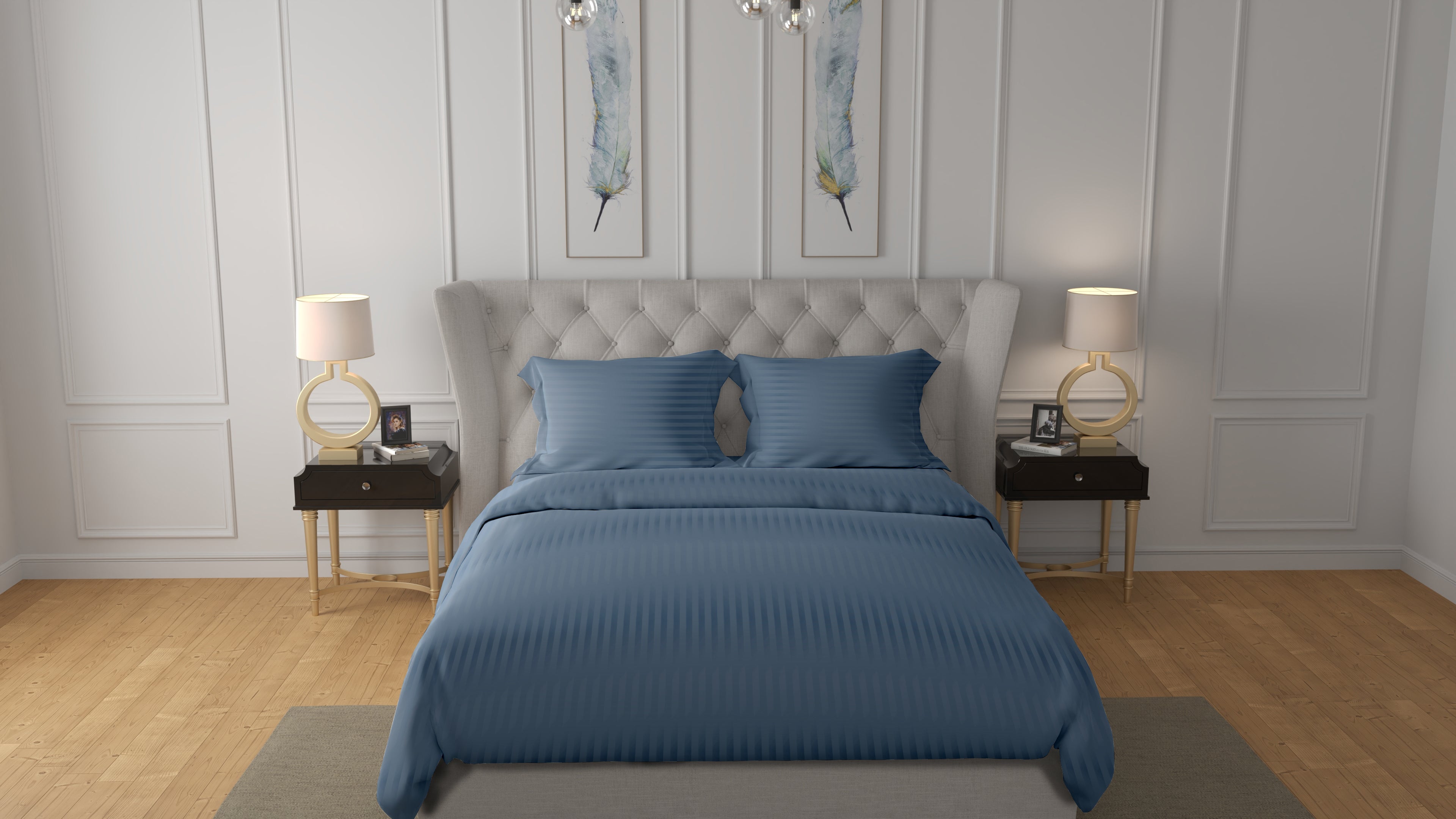 Cotton 6mm Stripes Coronet Blue Bedsheet Set- 100% Pure Cotton