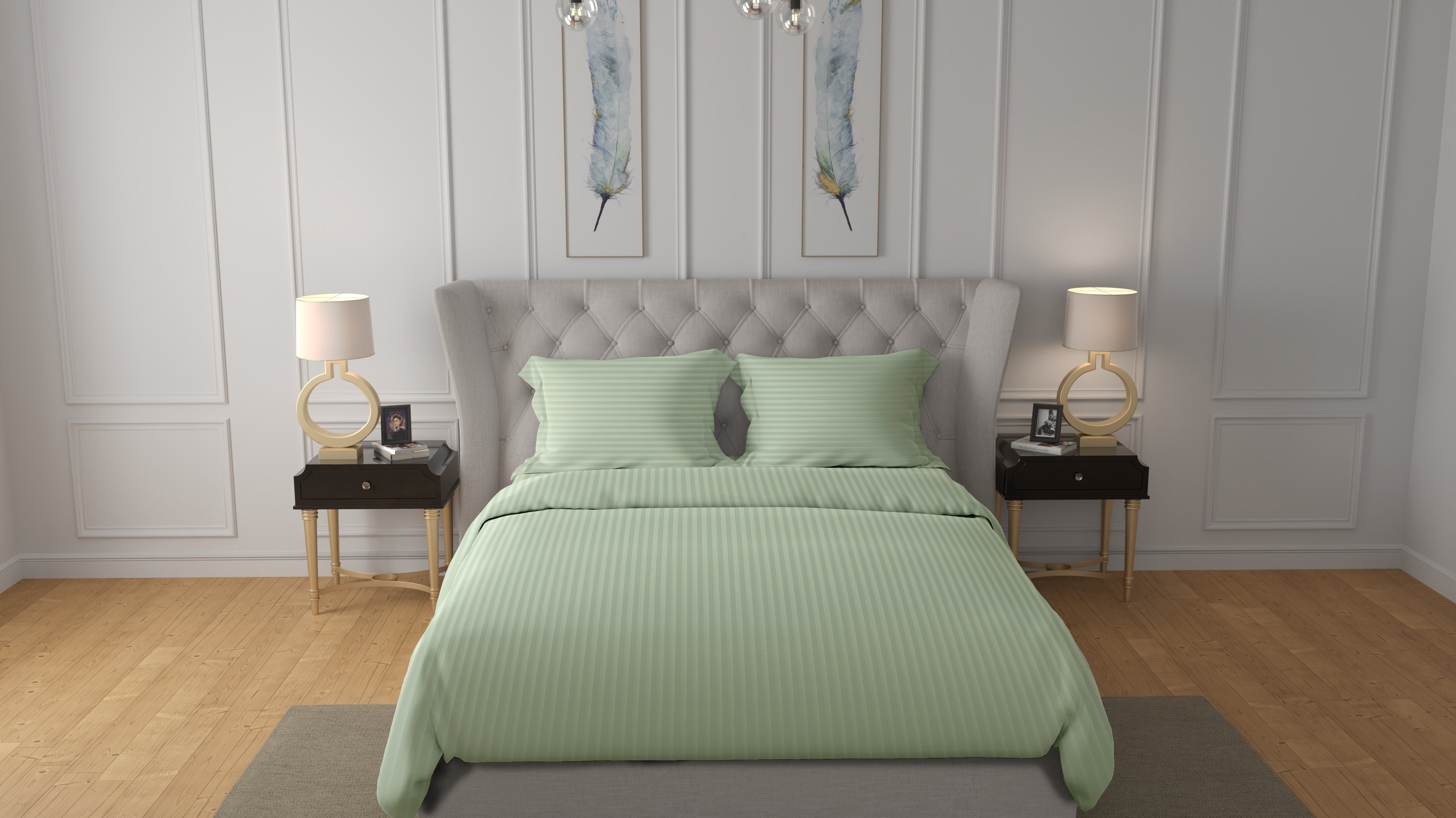 Cotton 6mm Stripes Frosty Green Bedsheet Set- 100% Pure Cotton