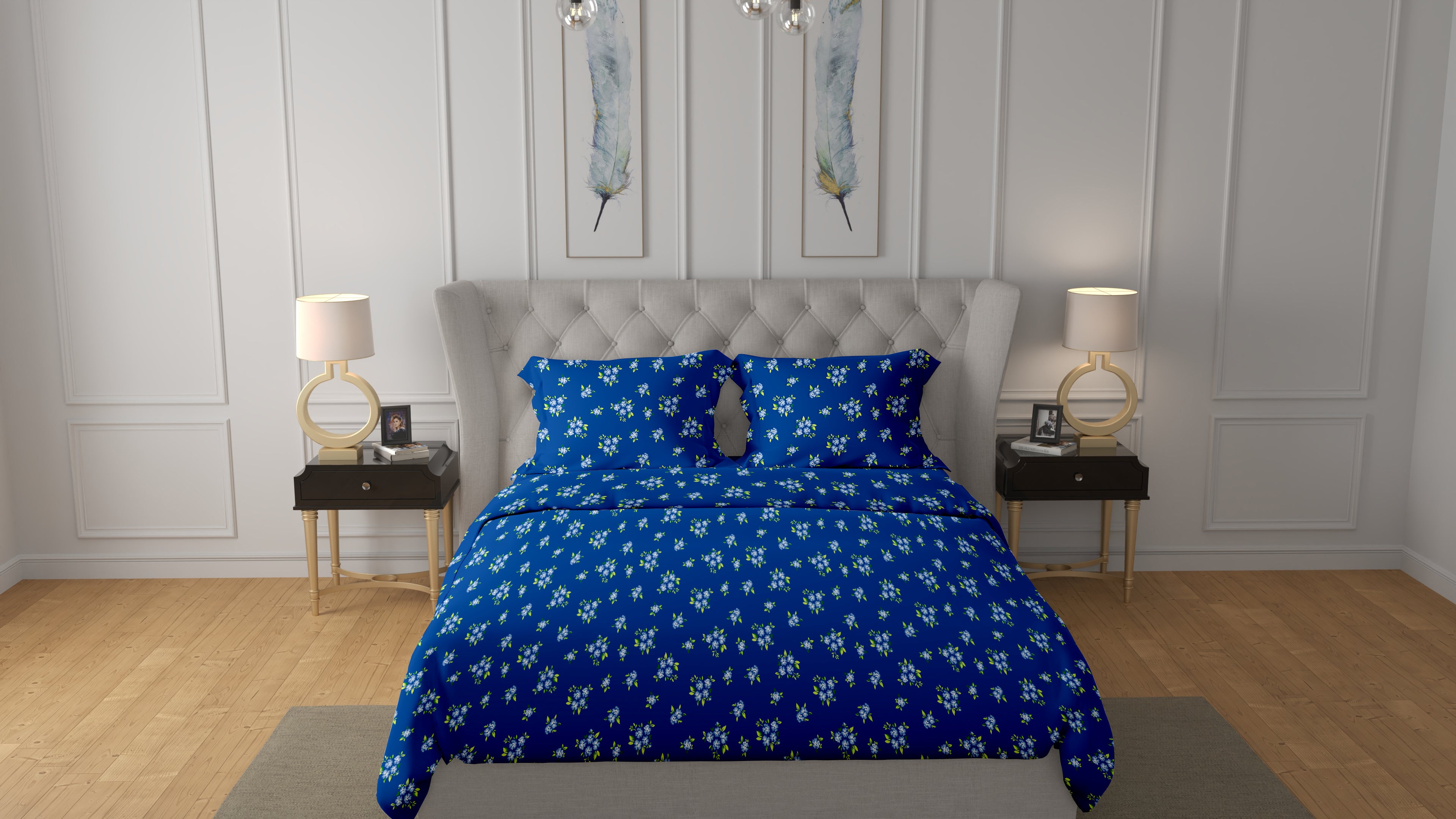 Swaas 100% Pure Cotton Glori Blue Bedsheet Set