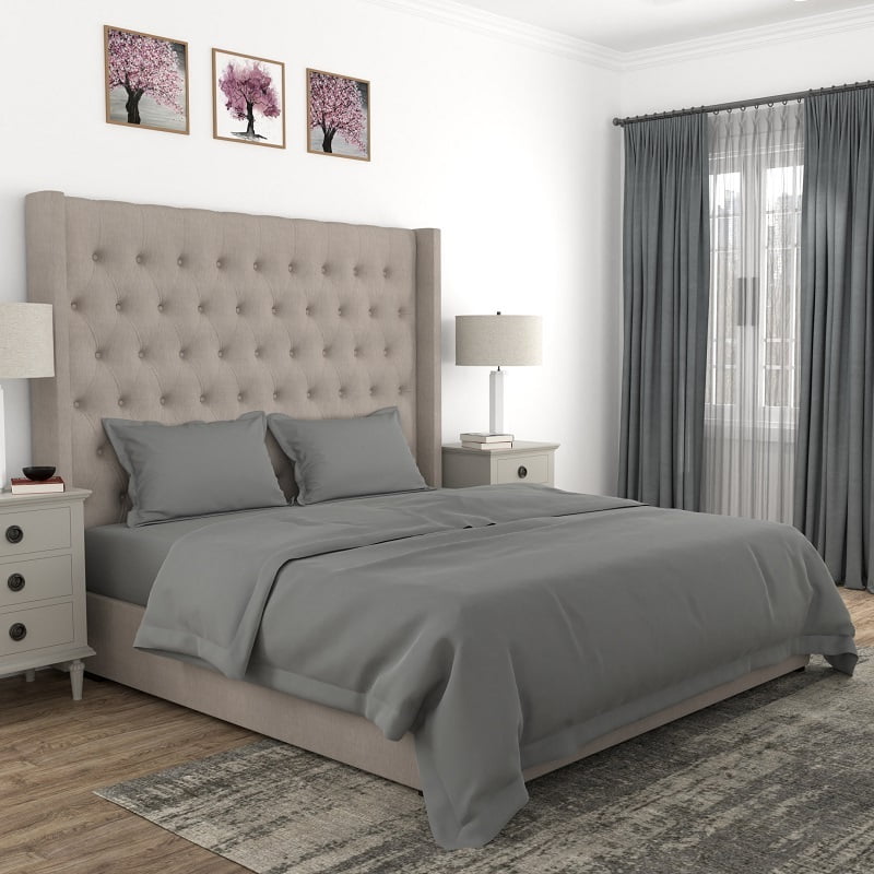 Swaas 100% Pure Cotton Plain Satin Graphite Bedsheet Set