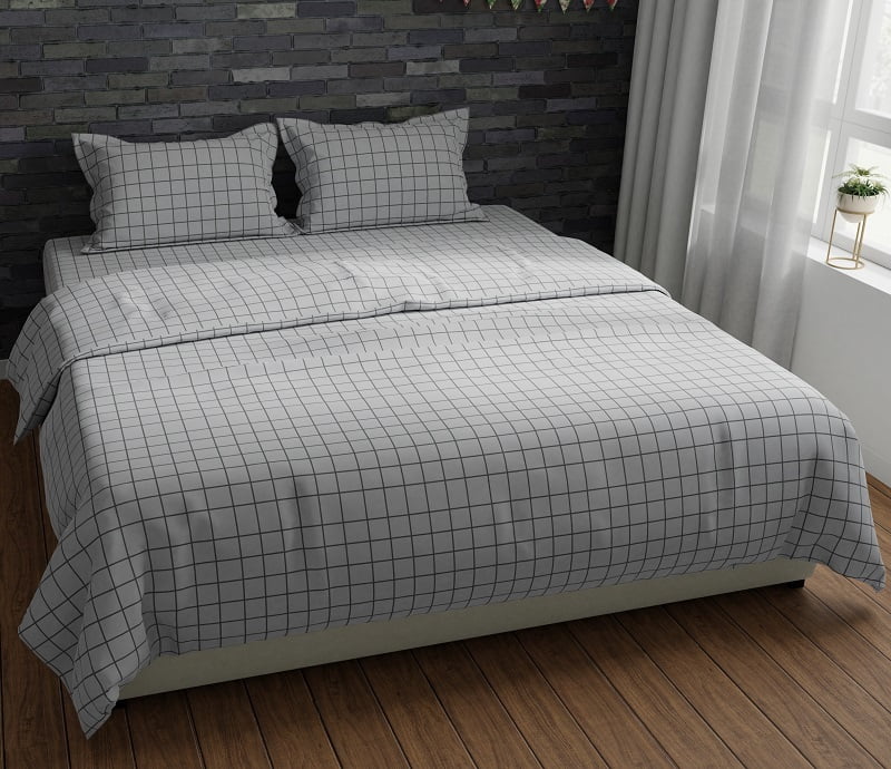 Swaas 100% Pure Cotton Window Pane Grey / Black Bedsheet Set